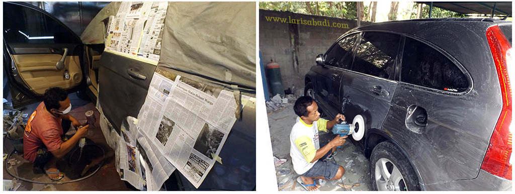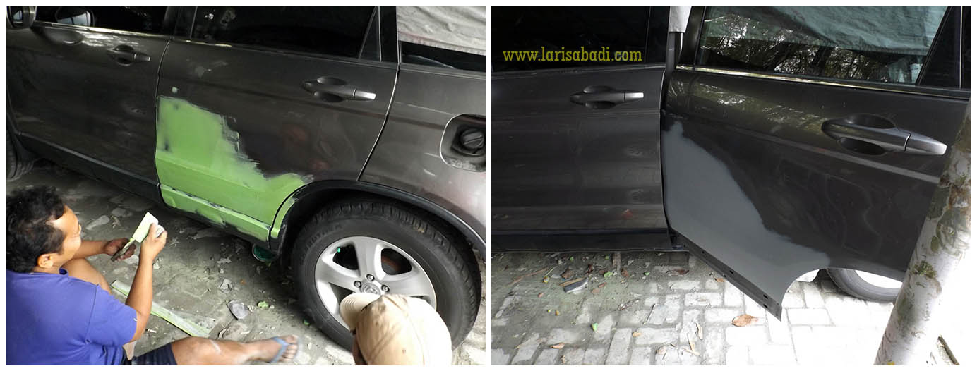 Berikutnya, setelah cat kering, kami poles bagian pintu tersebut agar debu sisa pengecatan dan tekstur yang kurang halus hilang. Nah, silahkan dilihat dokumentasi kami. Kini CR-V Mr.D kembali mulus dan beliau bisa pulang dengan gembira.. Tetap hati – hati ya bos..